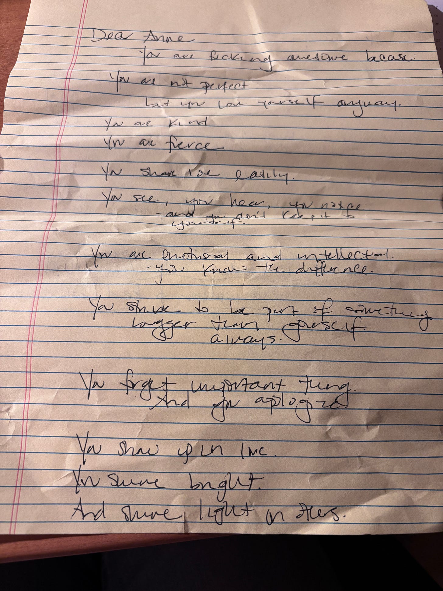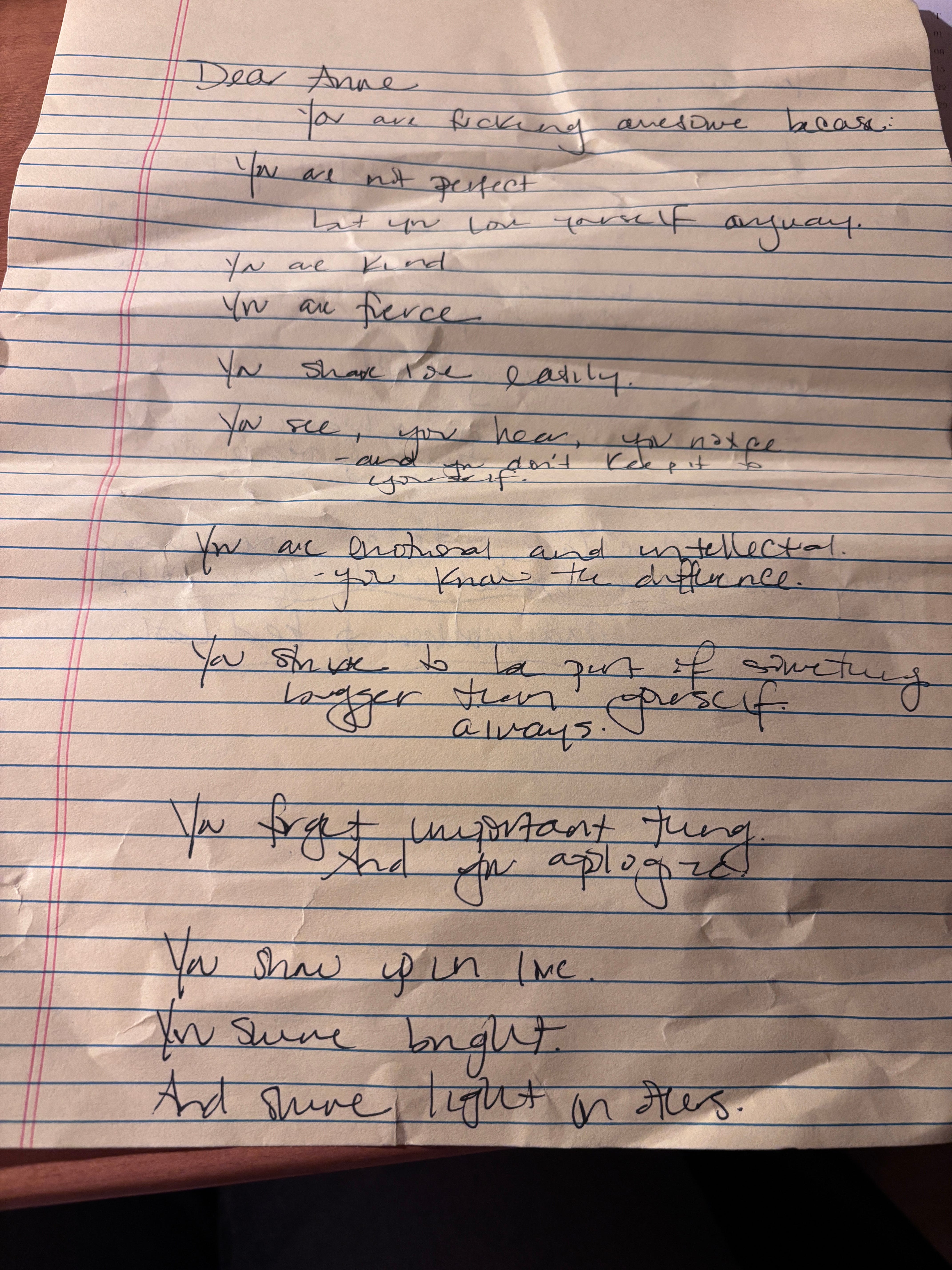 We had been instructed to answer the prompt “You’re Fucking Awesome Because…”